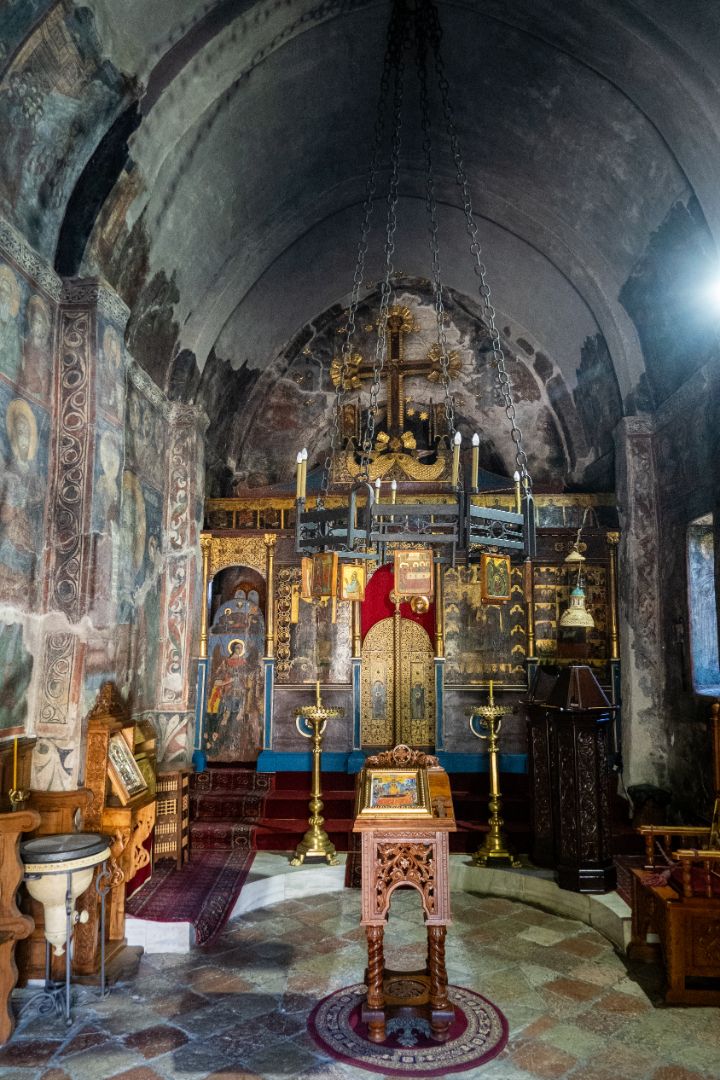 From what I can gather the first church you come to, St Sava, is relatively new. 19th century I believe which in Old Religious Shit terms is basically still in nappies. The brickwork is lovely with alternating layers of red and white brickwork and the frescoes are clean and vibrant. It’s refreshing to see how the really old stuff might have looked when it was first built. There did used to be an older church on this site but the monastery has suffered over the years from war and a big earthquake and that church was, at some point, reduced to rubble.
