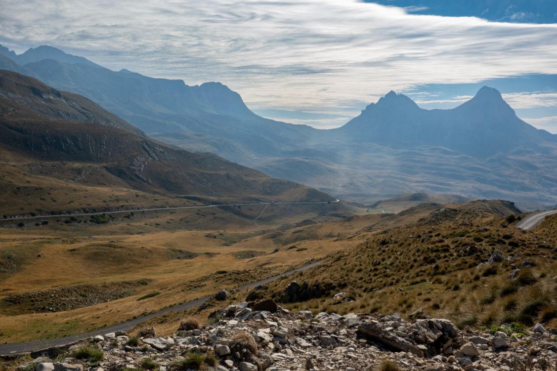 Obviously we weren’t leaving Plužine without one last wistful gaze out over the lake so after winding through a series of hairpins and tunnels cut into the rock and pretty much just left like that we pulled over into a layby where people had hung hammocks in the shelter. Mildly jealous of where they got to wake up that morning. Less jealous that they got woken up by two lesbians in a Skoda. Oops. Anyway. A few more hairpins and we came to our most scenic spomenik at Trsa, took a few photos and joined the Durmitor Ring. My, that IS a narrow road. Fortunately there would be plenty of places to stop and recover from The Terror whilst putting various parts of the Durmitor National Park into our eyeholes.