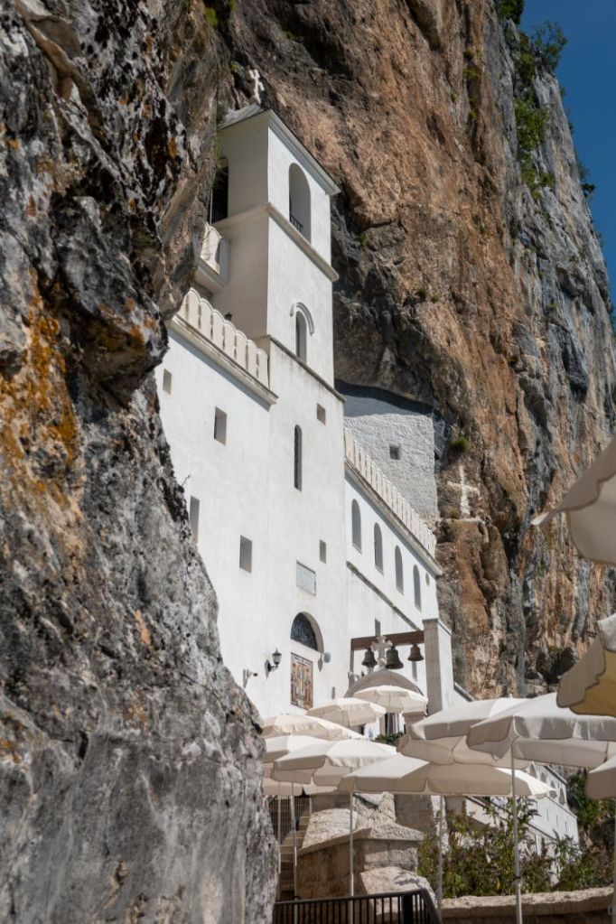 - If you’ve got a good zoom you can get a nice photo of Ostrog Monastery from the viewpoint at 42.671033, 19.027241. There’s a small car park next to the steps that lead up to it.