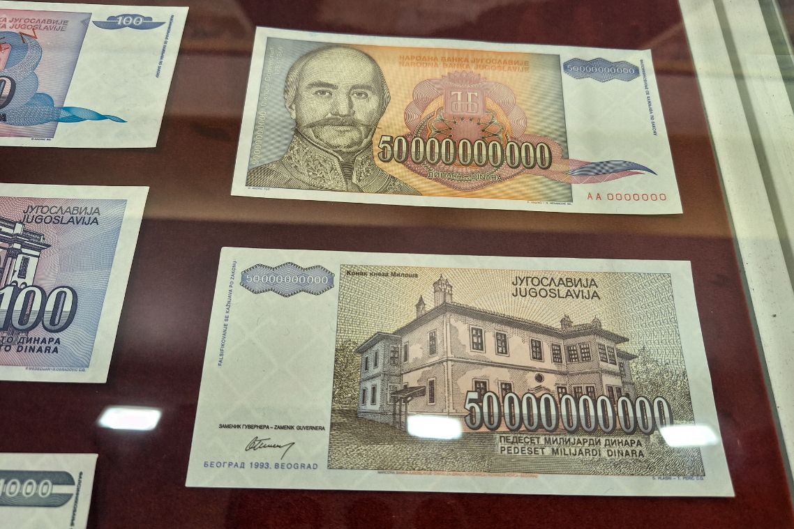 After the slog back down the hill we visited the monastery, then we went to the Museum of Money which is actually way more interesting than you would think. It basically just documents the currency used in Montenegro during the various occupations throughout the centuries. It talks about the hyperinflation in the 90’s when food prices rose daily thanks to civil war, international sanctions and closed borders. In 1993 inflation was 19810.2%. Bank notes were coming into circulation then becoming obsolete in a matter of days. They ended up with a banknote with a face value of 500,000,000,000 dinar. In 1994 they knocked off a bunch of zeros, introduced the new dinar and pegged it to the Deutsche mark. In 1999 it was decided that the Deutsche mark would be legal tender along with the dinar, then the dinar was scrapped in 2001 and the Deutsche mark became the currency. Montenegro switch to the Euro on the 1st January 2002 at the same time as Germany.