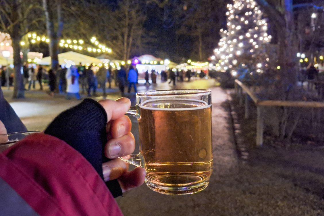 The Chinaturm was all lit up and a band were playing from the first level. It oozed Christmas. We began our mission to apply as many things as possible to our faceholes: Bratwurst, Glühwein, some manner of thing called Engelstrunk — which is basically Glühwein but with more shit in it — obviously beer, and then we discovered the existence of weißer Glühwein and immediately fell in love. Mulled wine, but make it white and add a shot of rum or amaretto. We tried one of each and planted ourselves firmly in the amaretto camp. I could probably drink enough of this to trigger type 2 diabetes. My dentist would be rubbing his hands with glee if he could see the sheer quantity of sugar washing liberally over my molars.
