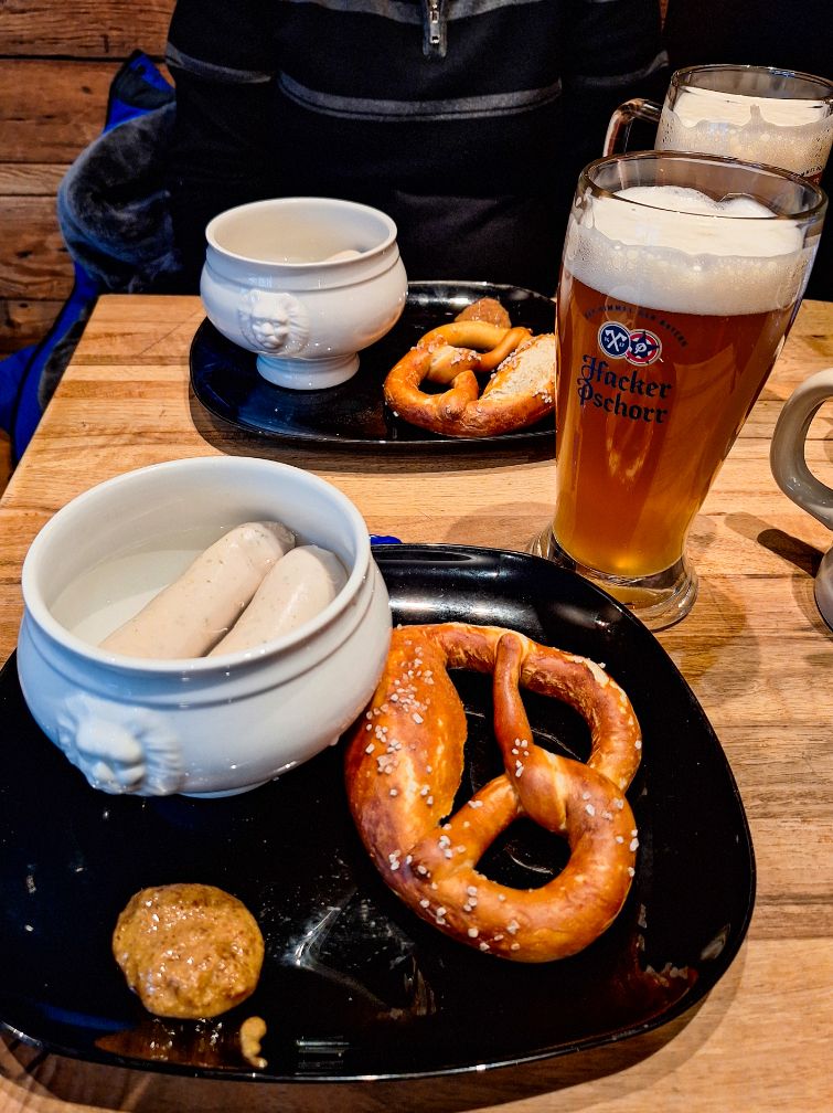 Most beer gardens aren’t open in November which is fair enough. No one wants their lips to freeze to their Maß unless it’s accompanied by Christmas music and stalls selling baubles. You can always fall into a Bierhalle though for all your food and beverage desires. The ones we went to seemed to be loyal to one brewery, either by choice or because the brewery literally owns it. The most famous, of course, is Hofbräuhaus am Platzl, owned by the brewery of the same name, which was founded by Duke Wilhelm V because he didn’t like the existing beer in Munich.