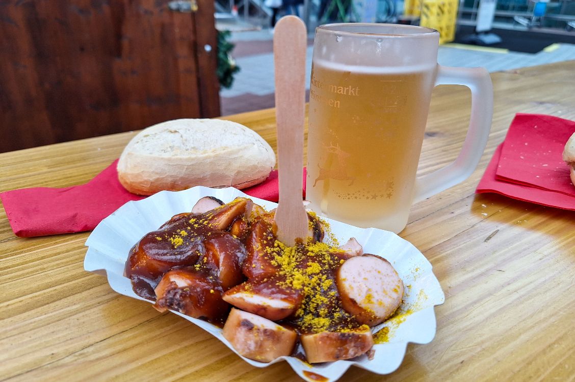 That’s something you need to know. Whenever you buy a drink at the markets you’ll need to pay a Pfand, a deposit, ranging from €2 to €5, sometimes €10, or in this case €15 if the cup is particularly desirable. Apparently Americans like to collect them. The bigger markets will give you a token (the smaller ones don’t bother) and sometimes you return it to a dedicated Pfandrückgabe, deposit return, or you’ll bring it back to where you bought it. Even if you paid the deposit by card it’ll be returned to you in cash.