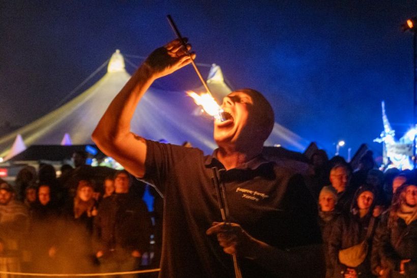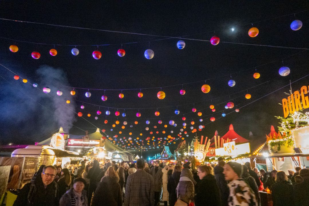 We walked from Pink Christmas to the Tollwood Winterfestival (Closest U-Bahn: Theresienwiese) which is huge and has a covered market and a live music tent along with the now-familiar food, drink, and trinket stalls. It’s at the same site as Oktoberfest which is a vast expanse of concrete and Tollwood — despite being big — is dwarfed by the space. It took roughly three whole days to walk across the site to a fuck off big statue called Bavaria, then another day to walk from there to Tollwood. This is where we spent our second evening in Munich, chucking beer and food down our necks, trying to resist the temptation to buy pretty much everything, and watching live music. Definitely do your market perusal first before applying poor-decision-making juice to your braincells lest you end up with six warm hats, a nice throw, and an A1 size drawing of a cross-section of a human printed on rustic paper.